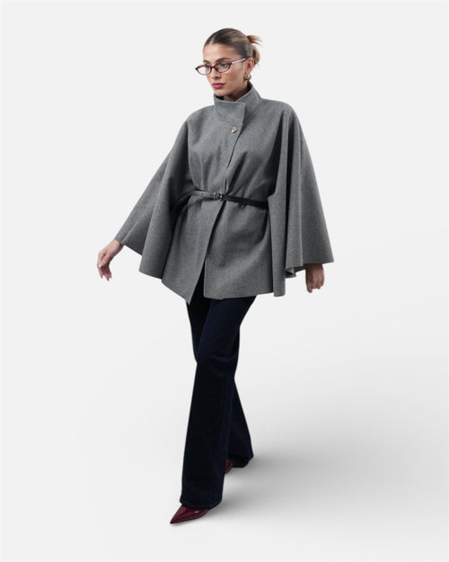 Γκρι καμπαρντίνα με ψηλό γιακά και ζώνη